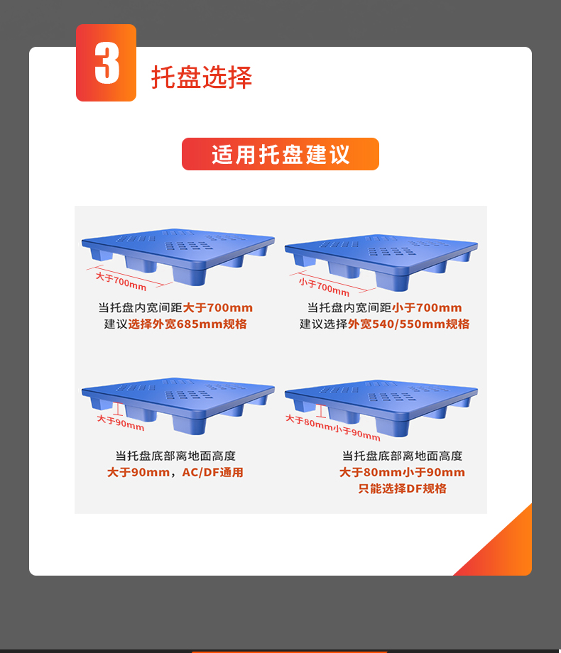 | 8 | 貨叉總寬度 | mm | 450/520/540/685 |