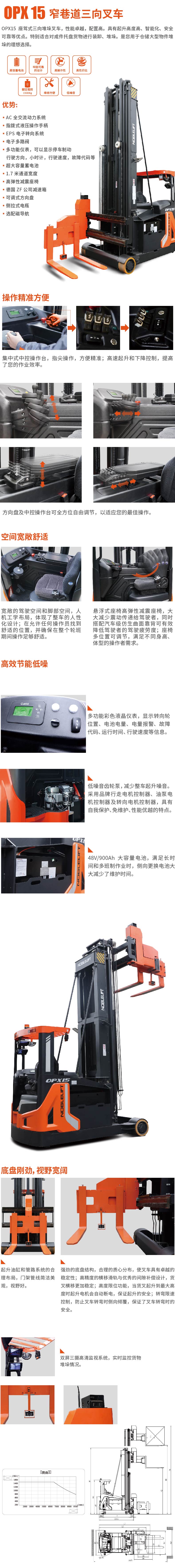 OPX15 1.5噸窄巷道三向叉車