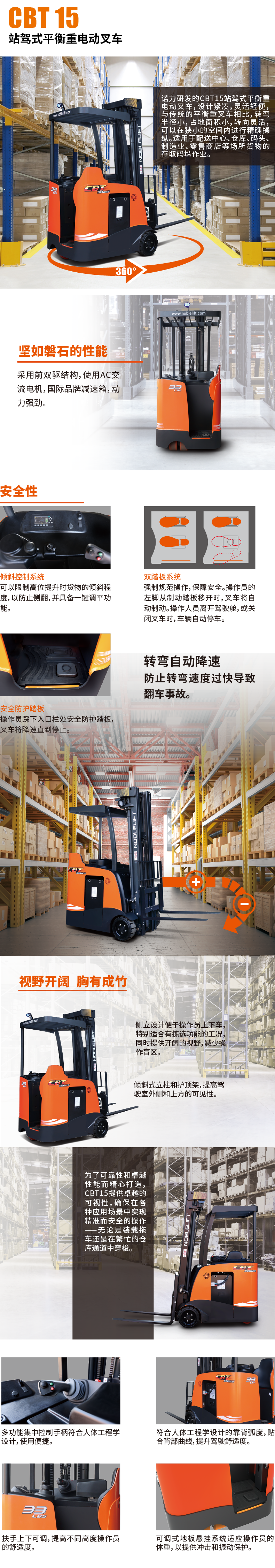 諾力站駕式平衡重電動叉車CBT15,設(shè)計(jì)緊湊,靈活輕便,與傳統(tǒng)的平衡重叉車相比,轉(zhuǎn)彎半徑小,占地面積小,轉(zhuǎn)向靈活,可以在狹小的空間內(nèi)進(jìn)行操縱。適用于配送中心、倉庫、碼頭、制造業(yè)、零售商店等場所貨物的存取碼垛作業(yè)。
